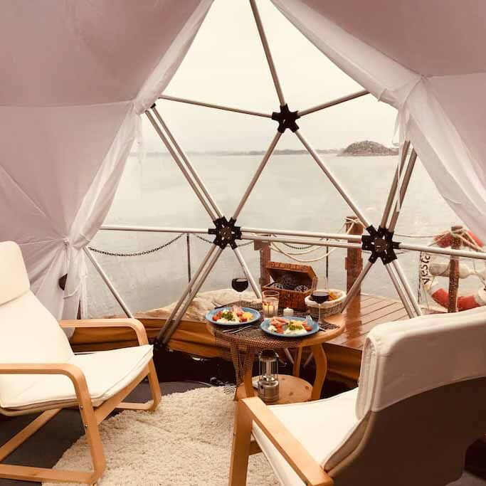 The Geodesic Domes boast an eye-catching, elegant design and are fully equipped with household amenities, appliances, and kitchenware.