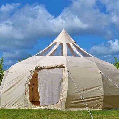 Enhance your glamping experience with our durable and stylish Bell Tent. Available in beige and khaki, this tent features premium waterproof and mould-proof fabric, a flame-retardant PVC ground sheet, and sturdy steel brackets. With 4 windows for excellent ventilation and an easy setup process, it offers comfort and reliability in all your outdoor adventures.
